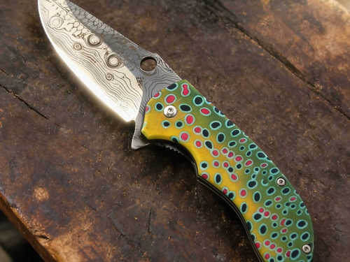 The Troutback Folder — Trout‑Skin Etched Edition takes the soul of the original and presses it directly into the steel. This version carries a blade etched with the same wild‑trout pattern found on the handle — greens, yellows, reds, and the unmistakable constellation of river spots. It’s not just a knife anymore. It’s a full‑body tribute to the fish that built the myth.